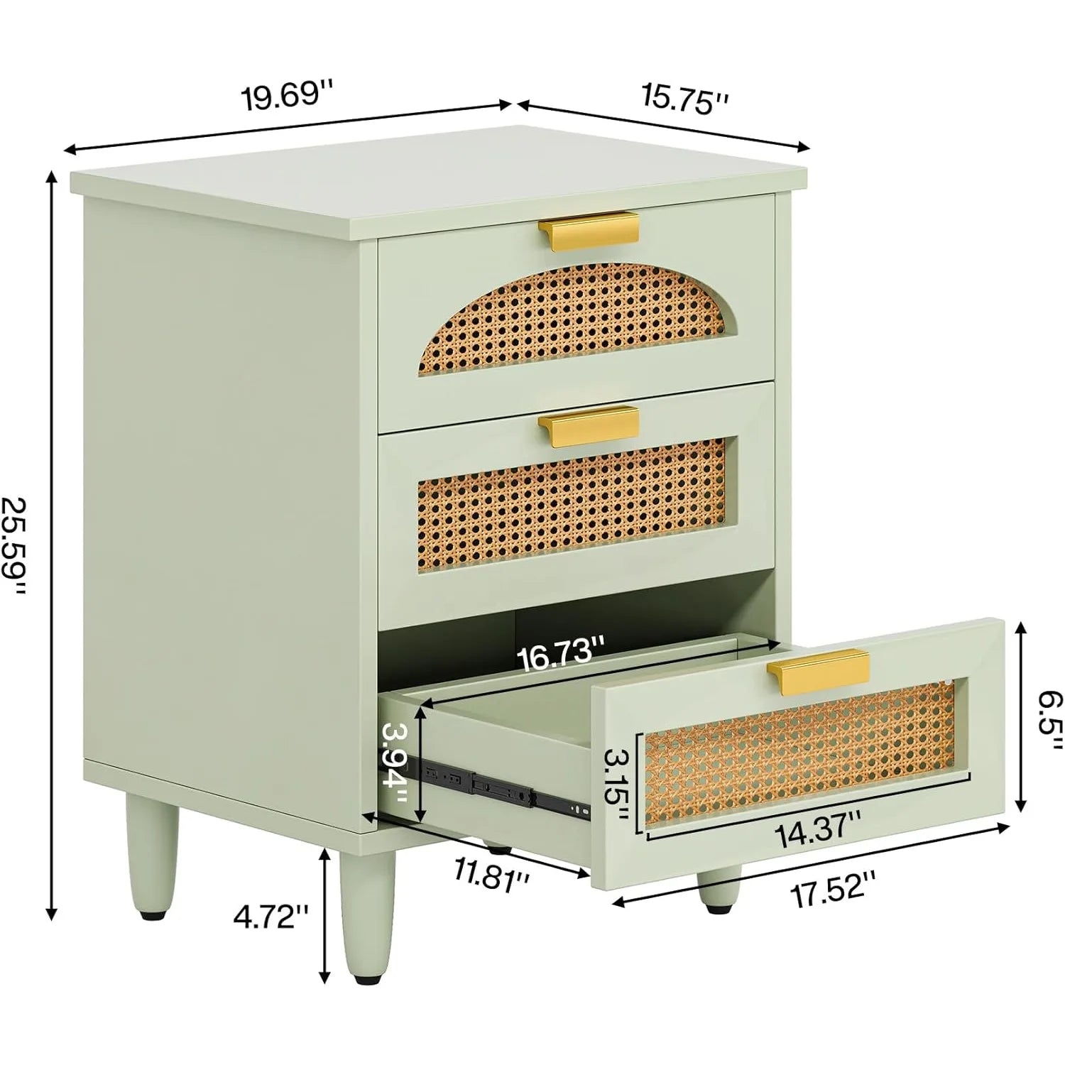 Mint Green Nightstand, 3-Drawer Rattan